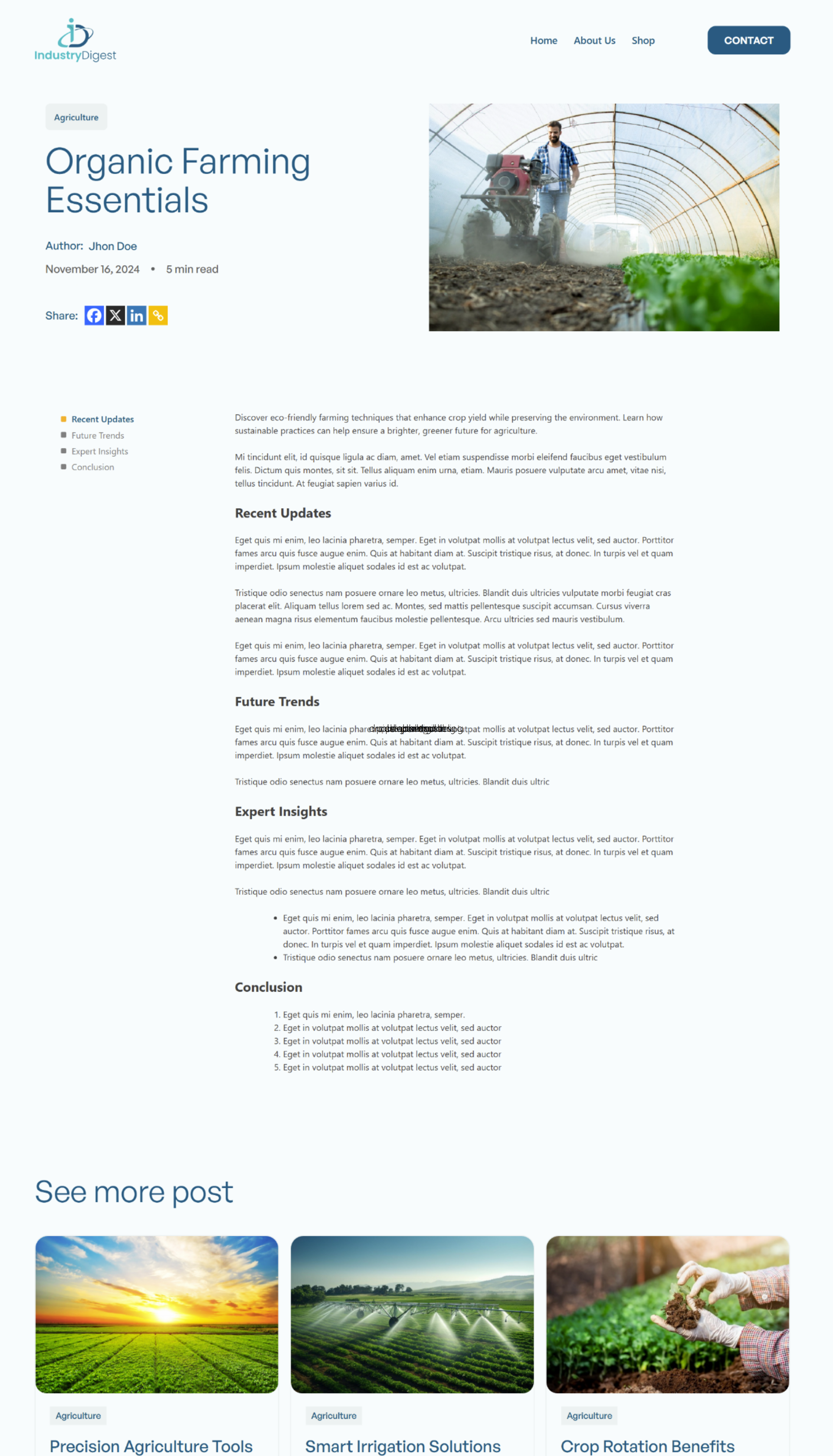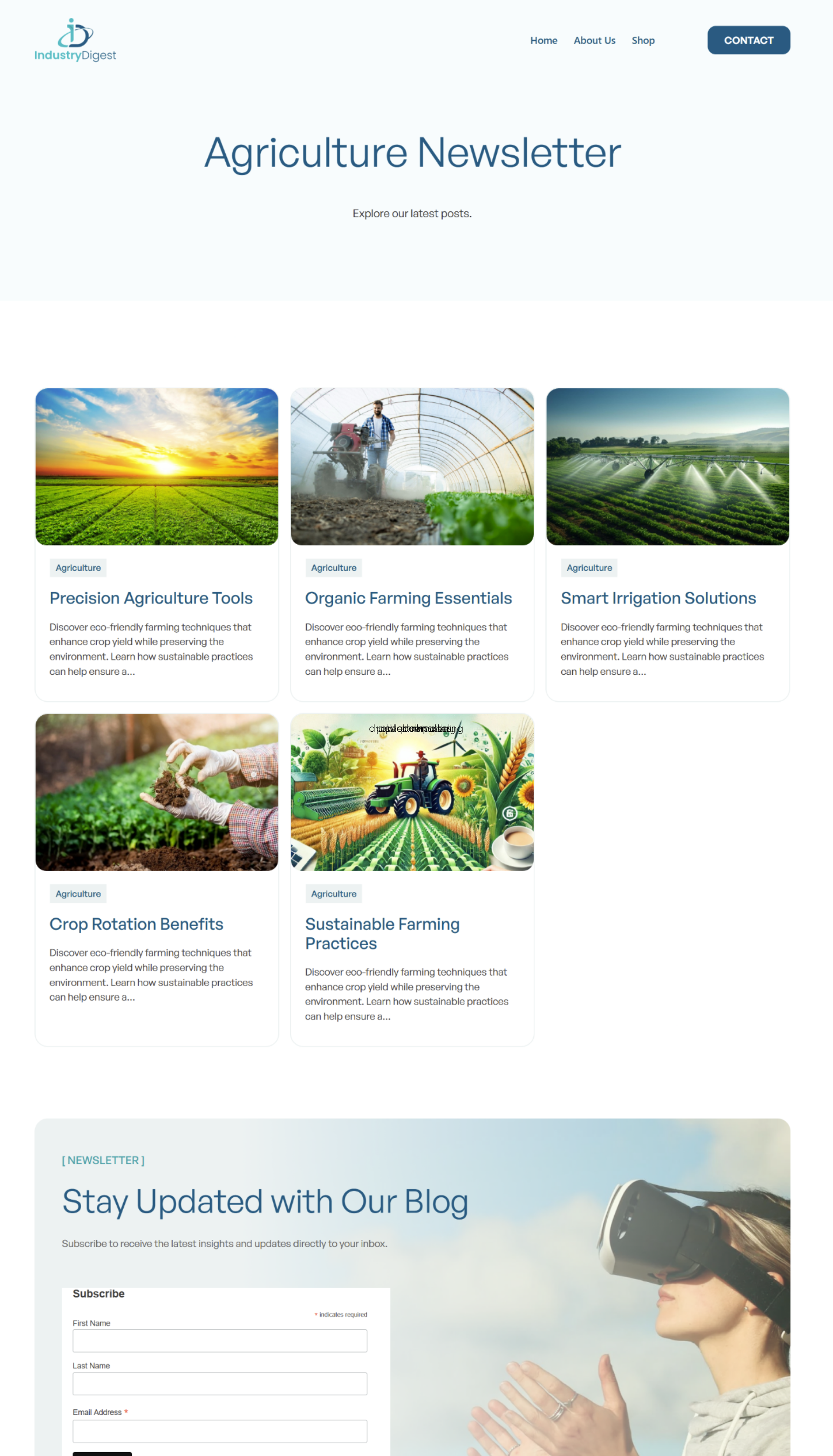 • Agriculture Newsletter: Empowering farms with sustainable techniques to boost productivity and preserve natural resources.